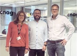 Authors of this study (from left to right): Ginevra Caratú, Laboratory Technician in the Single Cell Genomics Group at CNAG; Juan Nieto, Postdoctoral Fellow in the Single Cell Genomics Group at CNAG; Holger Heyn, Single Cell Genomics Group Leader at CNAG.